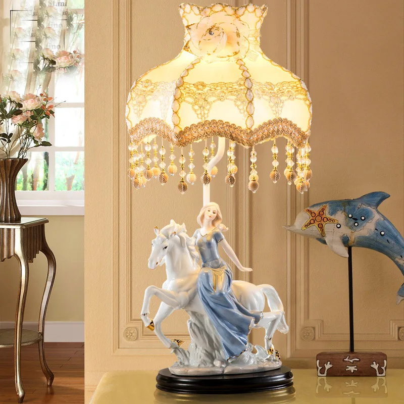 Thanks for reading Promo Horse Riding the girl Ceramic desk lamp Home Decoration Romantic modern bedroom light fabric table . Please share...!